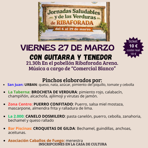 Musica + Degustación de pinchos elaborador por: los bares y restaurante locales colaboradores y concierto Comercial Blanco: San Juan, Taberna, Zona Centro, Bar la 2000, Bar Piscinas y Asociación Caballos de Fuego.