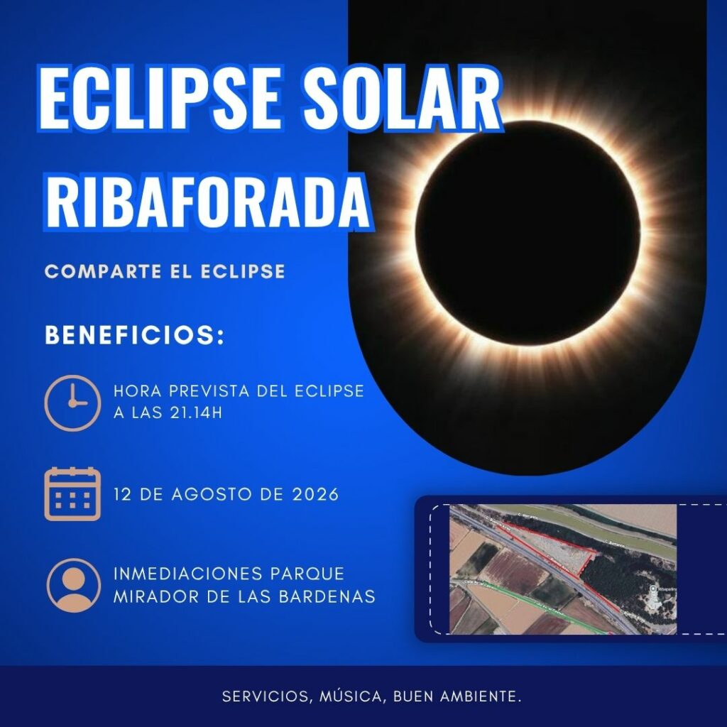 El eclipse total del 12 de agosto de 2026 se podrá ver en la localidad de Ribaforada en las inmediaciones del » Parque Mirador de Las Bardenas»